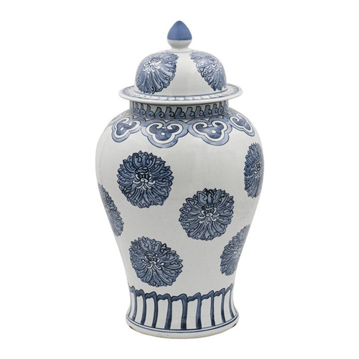 This beautiful floral pattern will add classic, feminine style to your home. Our Chrysanthemum Temple Jar is an oversized piece that makes a statement and looks great styled in an entryway, on a kitchen island or in front of a fireplace.