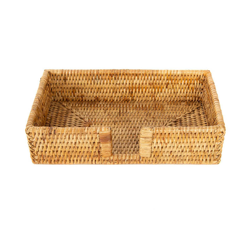 Woven from Burmese rattan, which is natural and sustainable, our Sconset Guest Towel/Napkin Holders come stained in a natural color to provide a sophisticated look.