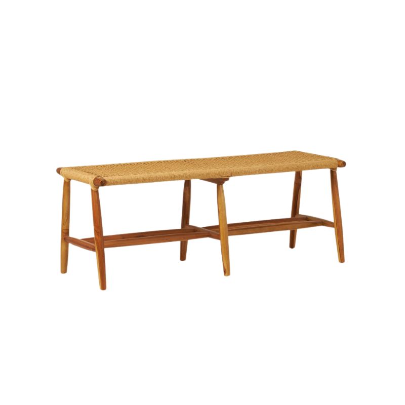 Our Point Dume Bench brings the easygoing spirit of coastal living to your home. Handcrafted in teak and artfully loomed fiber this beautiful piece is both understated and perfectly chic. Ideal for the foot of the bed, a hallway or entryway, its natural allure and relaxed design make it the perfection companion of moments of leisure.