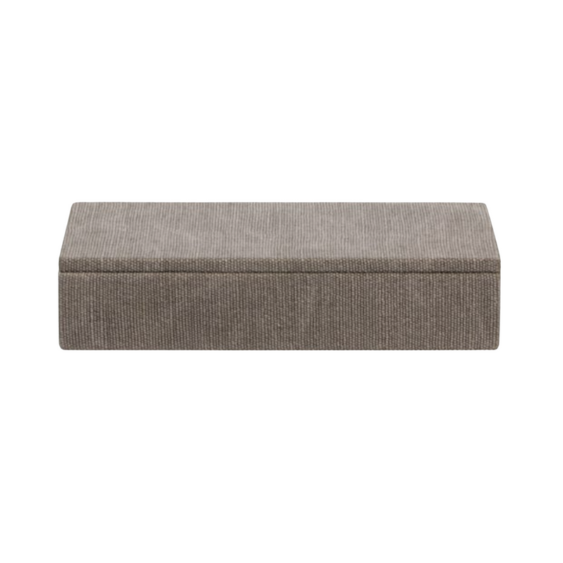 Made from light grey cotton jute, this stylish textured fabric decorative box is lined with a candy stripe interior. These boxes make a beautiful decorative accent in bookshelves, or serve as functional decor for storing jewelry on a dresser or remote controls in a family room.