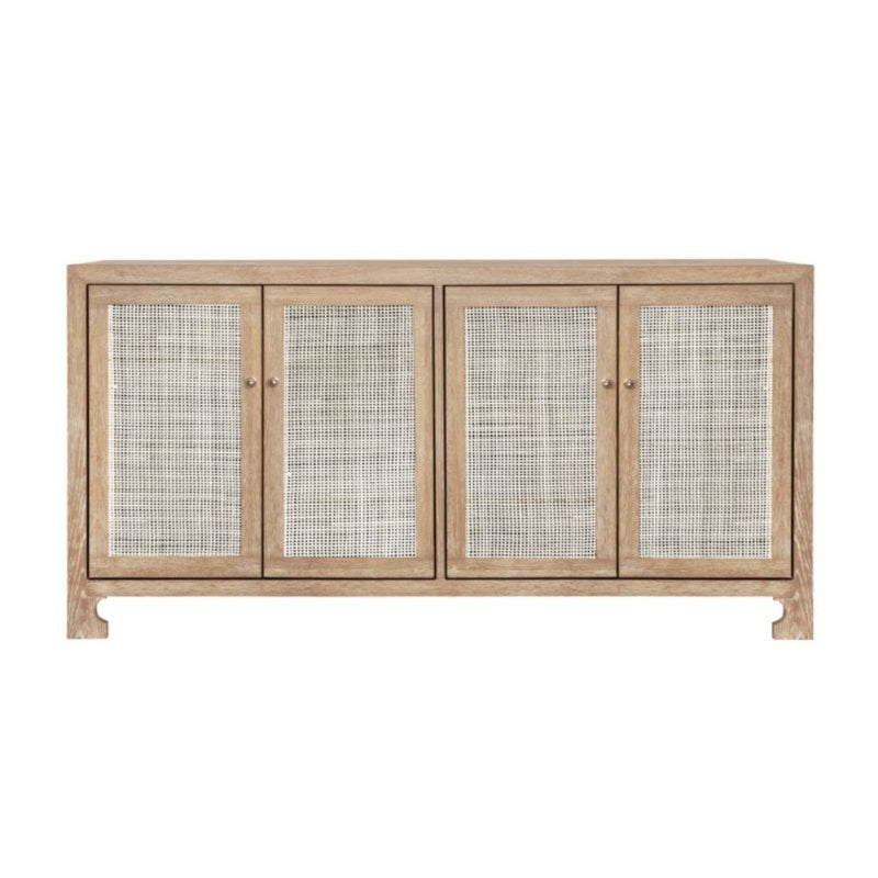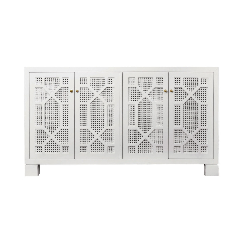The Seaside Buffet brings natural coastal beauty into your home. The rattan buffet features beautiful woven and braided details throughout. Spacious storage inside the four-door sideboard can be accessed with the elegant satin brass pulls. This effortlessly elegant rattan cabinet also offers ample space to place serving dishes on top while entertaining.
