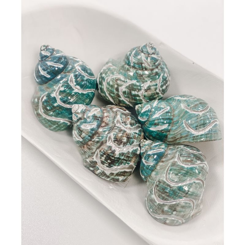 These jade green iridescent shells feature a beautiful carved design and make an ideal accessory styled in decorative bowls or jars. We like pairing our Jade Carved Turbo Shells with our Wave Bowl.
