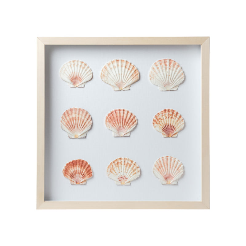 Bring the calming beauty of the shore into your home with our Sea Scallop Framed Art. Carefully arranged on soft white linen, each piece features a captivating grid of authentic pink sea scallop shells, beautifully framed in natural maple wood. Available in two sizes, this artwork effortlessly adds a sophisticated coastal touch to any room. Each seashell is uniquely formed by nature, ensuring your artwork is an original, ocean-inspired treasure.