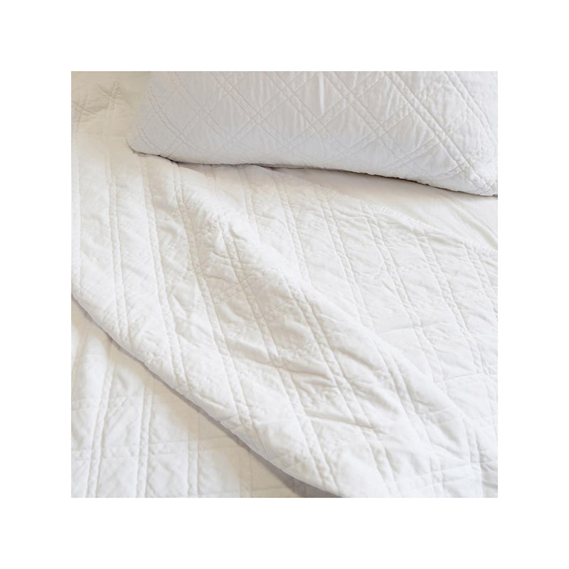 Inspired by the geometry of Mughal gardens, this quilt blends classic symmetry with a light, tailored feel. Crafted from ultra-soft cotton voile and hand-stitched in India, it’s featherlight and breathable—ideal for warm sleepers or as a year-round layering piece, with a clean white hue that makes it endlessly versatile. Matching shams sold separately.