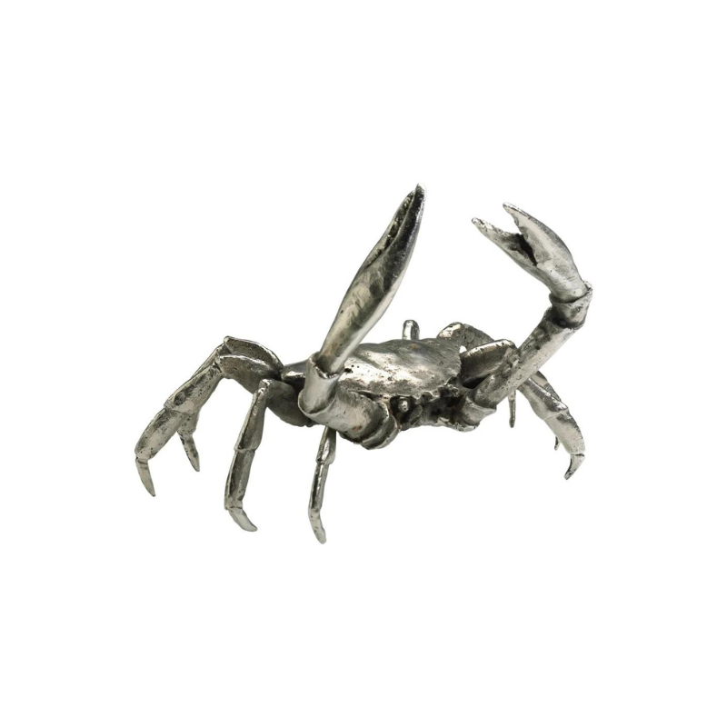 Infuse your space with the refreshing essence of the ocean with our playful large crab sculpture. Perfect for a coastal or nautical-themed living room, bedroom or office, this eye-catching piece exudes beachside vibes. Crafted with meticulous attention to detail, its fully realized natural features come to life, accentuated by a radiant silver leaf finish that adds a touch of brilliance to any setting.