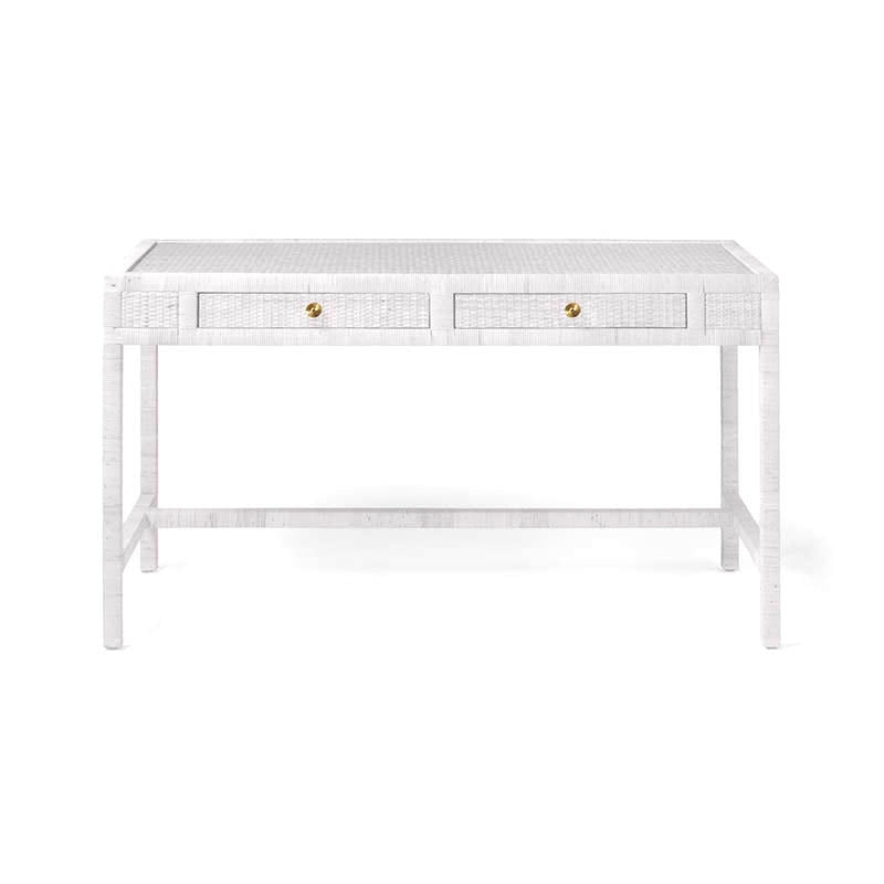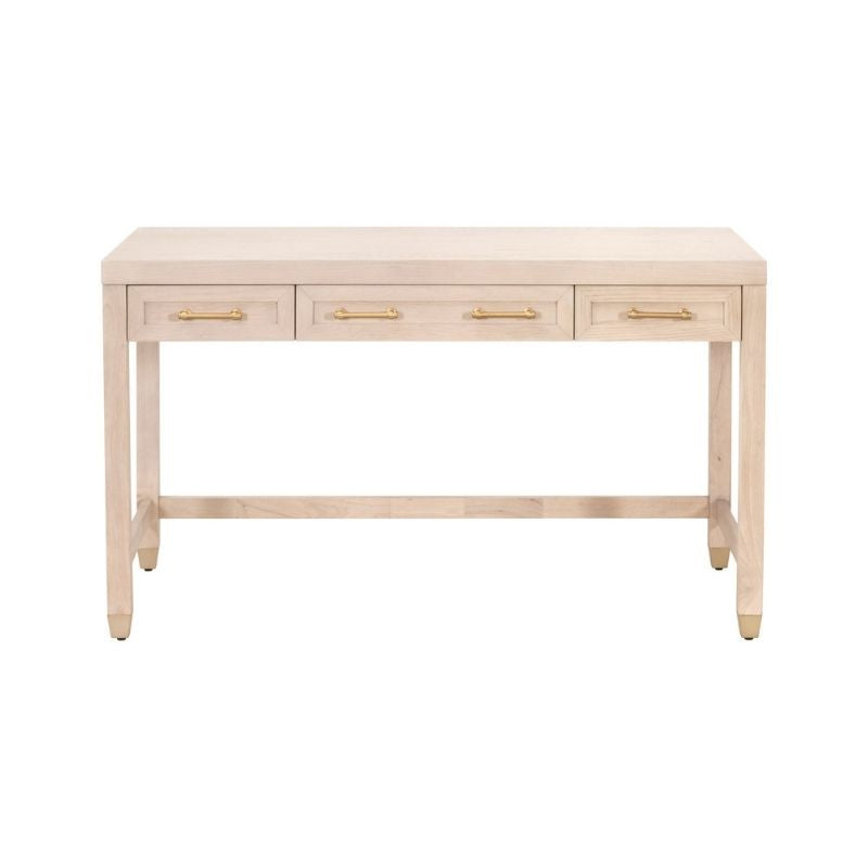 Whether in an office or a living room, our Lake House Desk lends an air of distinction thanks to bleached white wood, brushed brass handles, and foot caps. Constructed from natural materials, this piece may have minor variations in color, texture, and beauty marks, which enhances its natural charm.