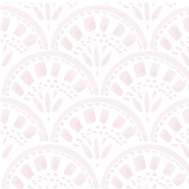 Our best-selling Riley Scallop Wallpaper is now available in blush pink! Featuring a blush-hued mosaic scallop design, this versatile wallpaper is ideal for a girl's bathroom, bedroom, playroom, or a stylish home office.
