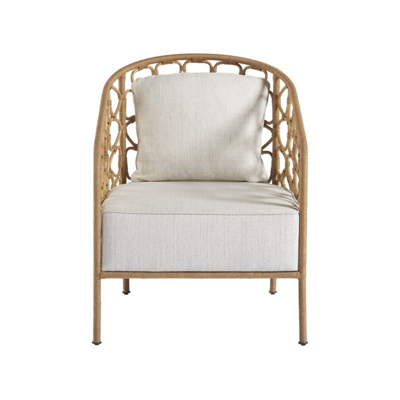 Transport yourself to a tropical destination, with our Kahoolawe Accent Chair. The curved silhouette, intertwined with freely shaped wicker, as well as an upholstered seat and kidney pillow, define the Kahoolawe Accent Chair, offering a breezy island look for your living space.