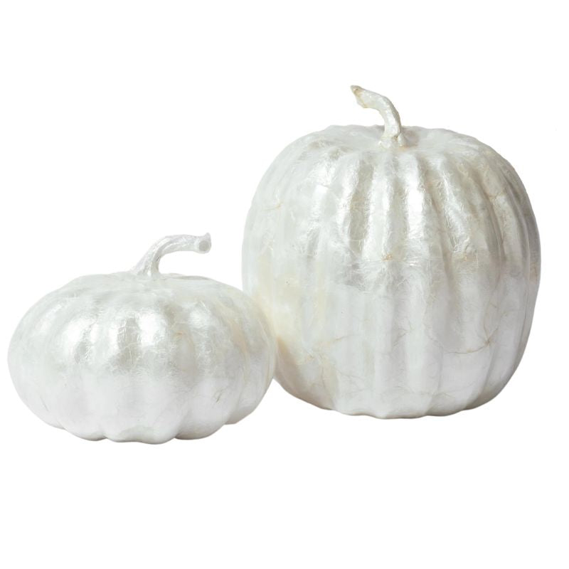 Elevate your autumn decor game with our Capiz Shell Decorative Pumpkins. Crafted to perfection from natural capiz shells, these pearly white pumpkins bring an elegant twist to your seasonal setup, leaving traditional gourds in the dust. Pair with our coordinating Capiz Skull for a truly unique coastal fall display.