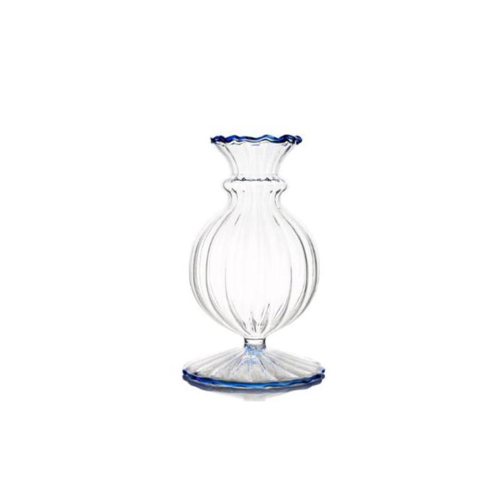 - Mouth-blown glass with blue rim, removable glass cylinder included.