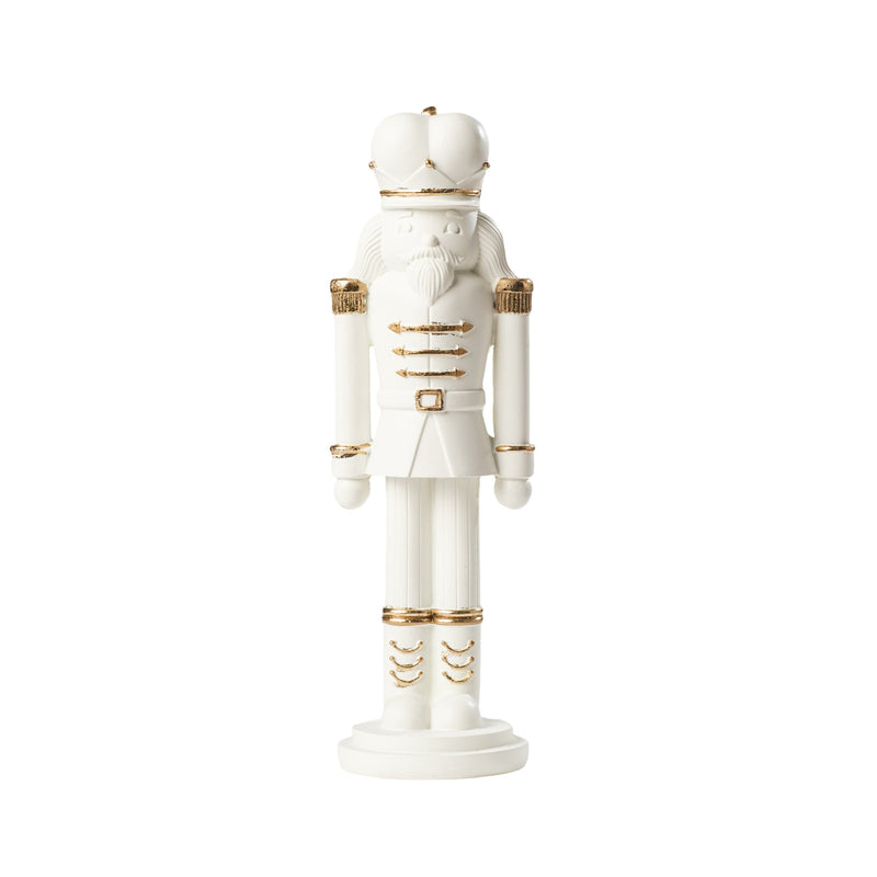 Classic and regal, our Gilded Nutcracker Soldier is a timeless addition to your holiday décor. Crafted of porcelain in a crisp white finish with elegant gold detailing, this stately figure brings refinement and tradition to mantels, shelves, or tabletops.