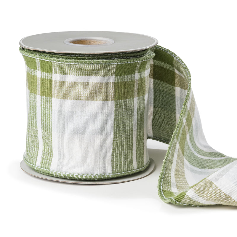 Classic with a fresh twist, our Evergreen Plaid Ribbon brings cheerful charm to your holiday décor. Crafted of cotton in soft green and white hues, this wide ribbon is perfect for trimming trees, accenting wreaths, or wrapping gifts with timeless style.