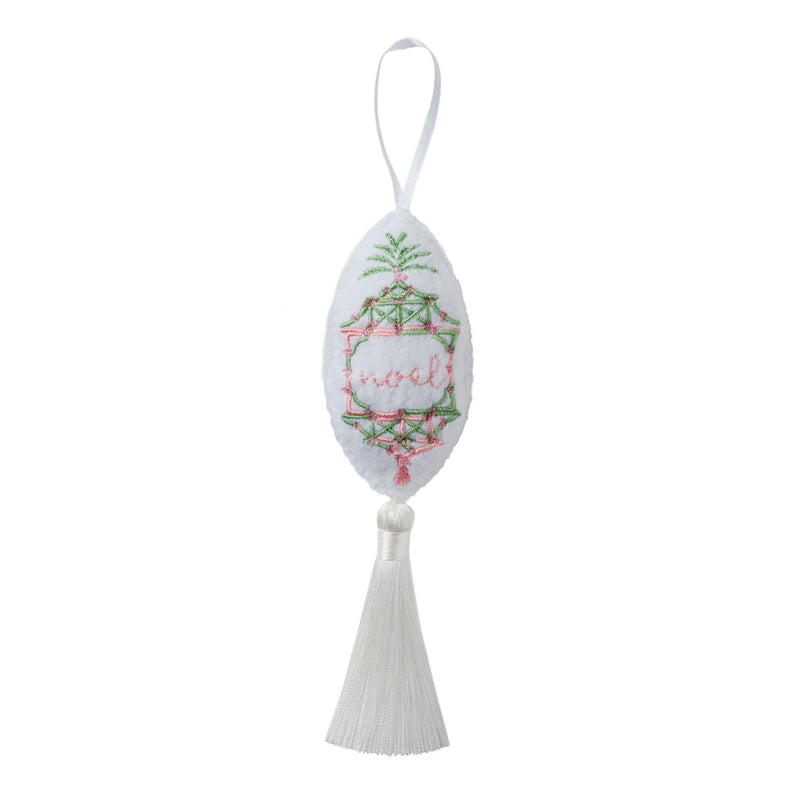 Infuse your holiday decor with the vibrant elegance of Palm Beach style. The Palm Beach Noel Bauble Ornament showcases a playful yet sophisticated design, embodying the glamorous, sun-kissed charm of this iconic destination. Whether adorning your tree or enhancing tablescapes, wreaths, drawers, and more, this ornament brings a touch of tropical luxury to your festive display.
