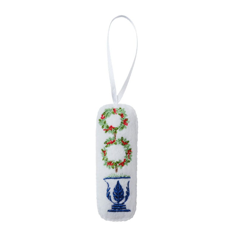 Celebrate the timeless charm of the holiday season with the Traditional Christmas Topiary Bauble Ornament. Featuring a beautifully crafted topiary nestled in a classic blue-and-white planter, this ornament brings an air of elegance to your festive decor. Its refined, traditional style makes it a perfect addition to your tree or as an accent on tablescapes, wreaths, drawers, and more. This charming bauble makes an ideal gift when draped around the neck of a wine bottle, or tied to the top of a present to further enhance your gift.