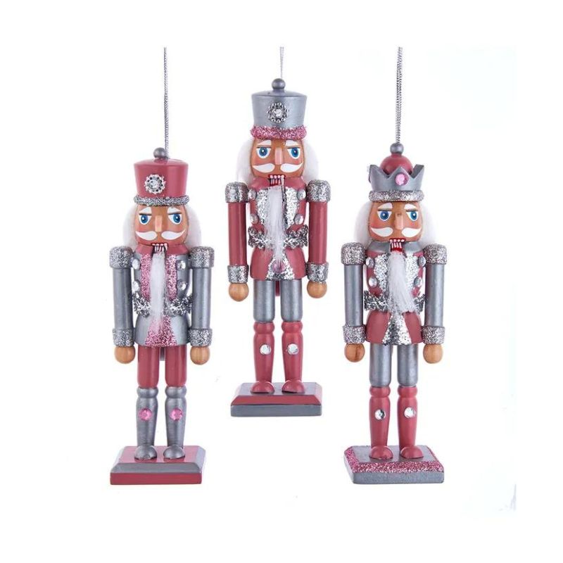 Add a touch of festive elegance to your holiday decor with our Pink Nutcracker Ornament Set. Crafted from wood and adorned with sparkling details, this set of three nutcrackers brings classic charm with a modern twist.