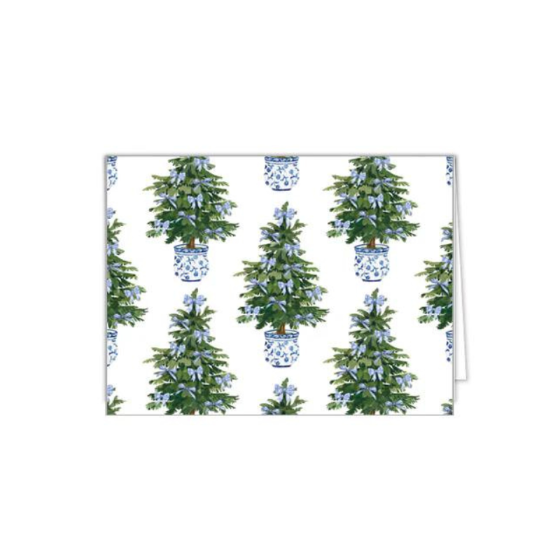 Our Christmas Tree Cards are designed to make your notes of gratitude stand out in style. Crafted with care, this set of 10 cards features a classic Christmas tree adorned with sweet blue bows in a chinoiserie planter, adding a touch of timeless elegance to your messages.