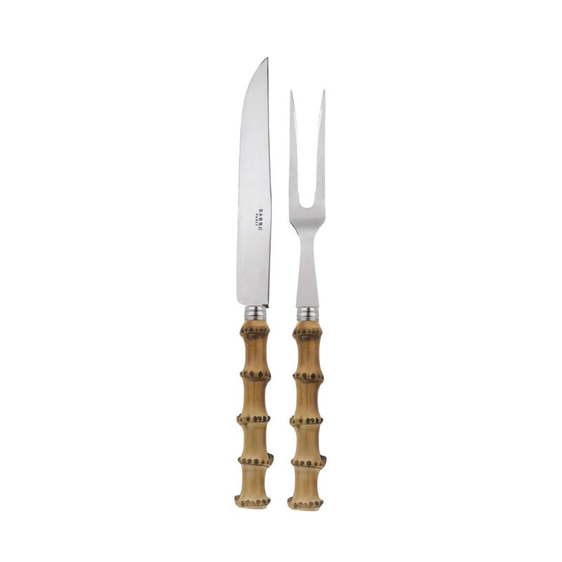 With genuine bamboo handles and finely crafted styling, this carving set makes a standout addition to your table. Combining natural elegance with functionality, it's perfect for serving in style and adds an island-inspired touch to your dining experience.