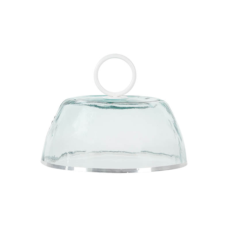 This glass dome display can be used with a wide variety of serveware pieces, including serving trays, charcuterie boards, trivets and cake stands. Use it to help protect food from dust, debris and pests while also helping to keep the ingredients underneath fresher while you entertain. Because it's made from recycled glass, each glass display is one of a kind with its distinctive grooves, dips and bubbles.