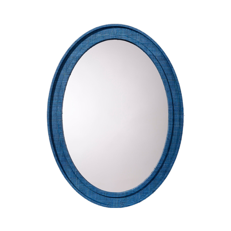 Richly textured with a frame of tightly woven natural raffia, our Pacific Oval Mirror brings light, movement, and warmth to any space. Its soft, organic texture makes it perfect for enhancing bedrooms, bathrooms or entryways. Available in a rich blue and a natural color, these mirrors offer versatile options to suit every design need. Each piece is expertly crafted, with attention to detail extending to their fully finished backs for a polished look from every angle.