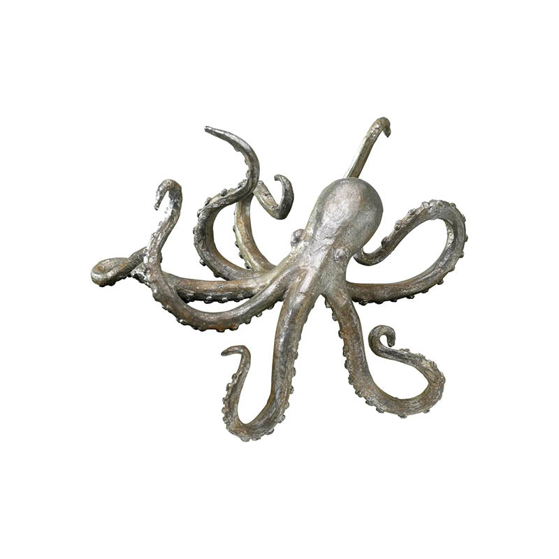 This novel Octopus Shelf Sculpture is well suited for any coastal abode - serving as the perfect object placed atop a stack of books in a bookshelf, entryway or on a coffee table. Its gilded finish offers a touch of glamour.