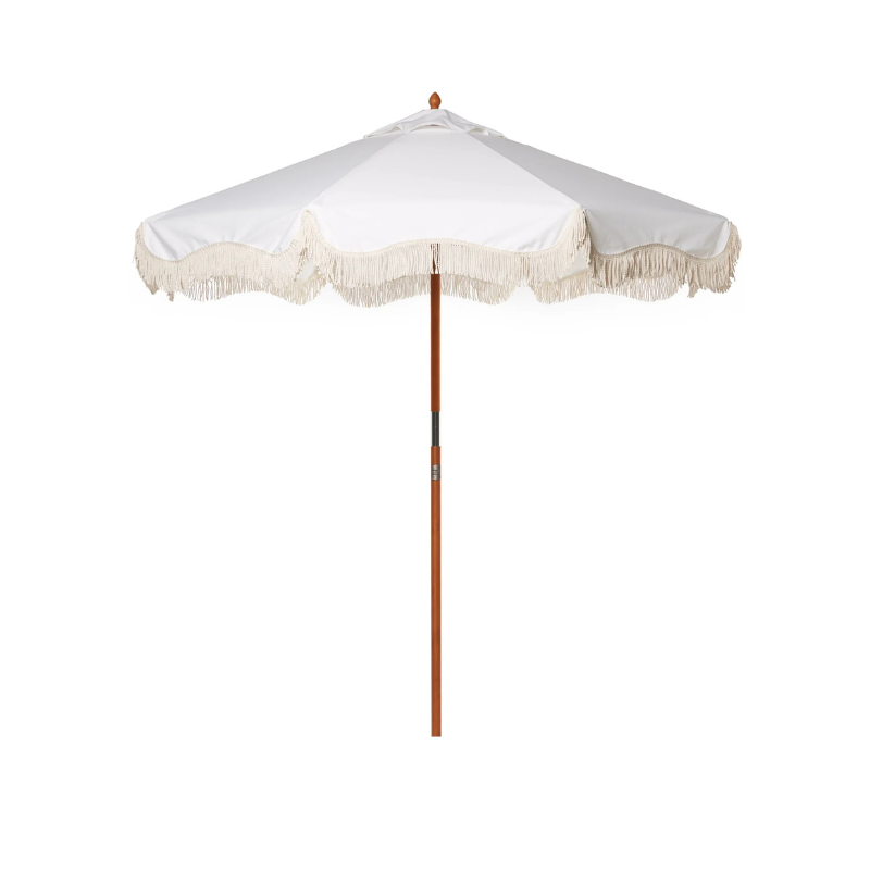 Elevate your outdoor space with the timeless elegance of our Patio Umbrella in Antique White. The oversized canopy, finished with delicate fringe, offers generous shade and a soft, sophisticated silhouette—perfect for patios, garden gatherings, or poolside lounging.