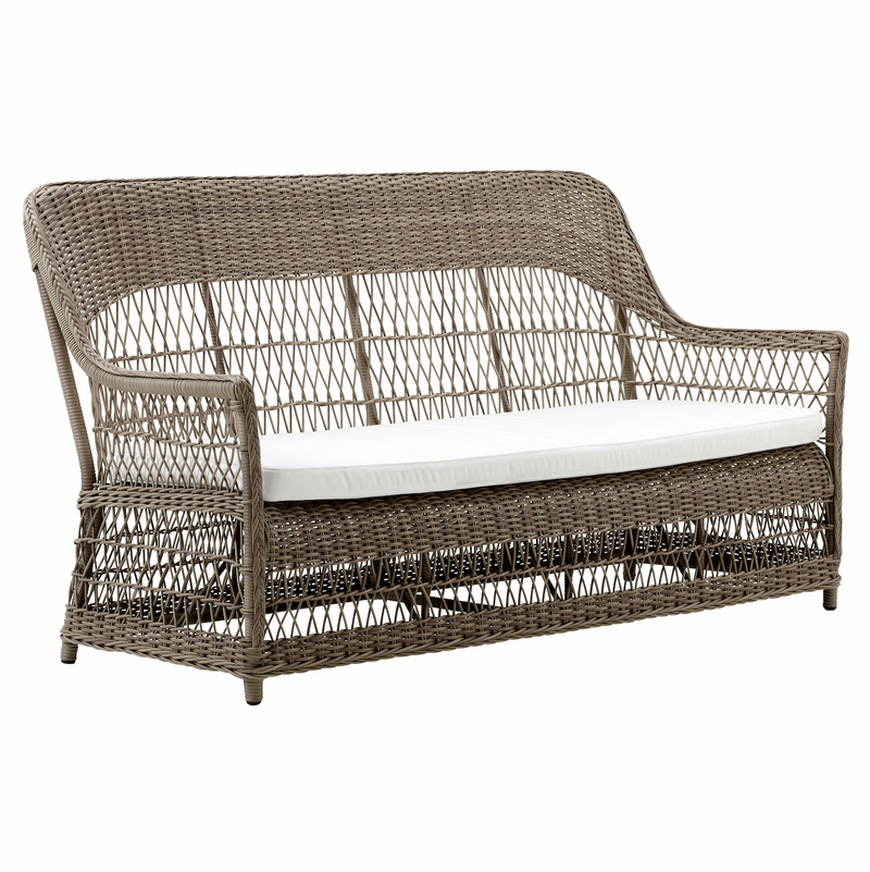The Sag Harbor Outdoor Sofa is inspired by vintage summer estates. Showcasing an airy, decorative woven back and apron, the sofa imparts the look of classic wicker. The frame is AluRattan™, a lightweight weatherproof aluminum, woven in maintenance-free polyethylene ArtFibre™ wicker. Combining an elegant aesthetic with all-weather protection, this 3-Seater sofa is a practical, durable addition to a garden or patio.