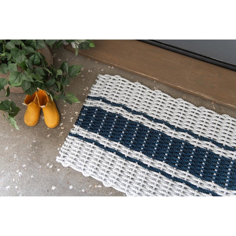 Nautical Rope Doormat - Fog Gray with Double Navy & Glacial Bay Stripes