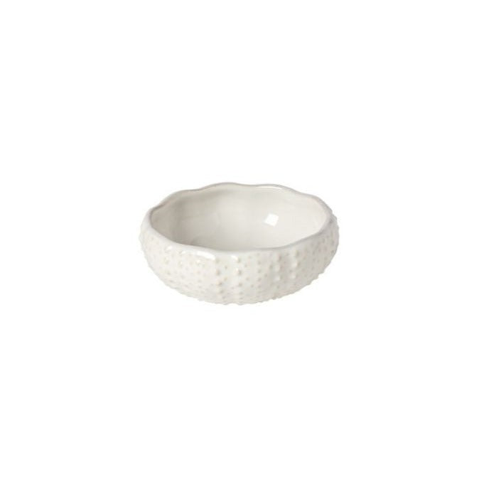 Crafted from high-quality stoneware in Portugal, each bowl is lovingly handmade to resemble the intricate beauty of a natural sea urchin, its textured design and scallop rim exude a sense of oceanic charm that captivates the eye. Infused with a mesmerizing serene blue watercolor glazed border, each unique piece is a masterpiece, adding a touch of artistry to your table setting. Whether you're serving up side dishes or appetizers, this bowl is a statement piece that effortlessly blends practicality with coastal flair.