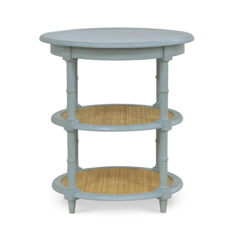 Classic coastal style meets everyday functionality with the Biarritz Side Table. Crafted from solid mahogany and finished with a distressed ocean blue-wash and natural cane shelves, this piece brings classic charm to your home. The versatile two-tiered design provides ample space to display your favorite decor, from coastal accents to fresh florals, while the sturdy mahogany top offers the perfect spot for your everyday essentials. Whether placed by a sofa or a bedside, the Biarritz Side Table adds warmth, texture, and practicality to any space.