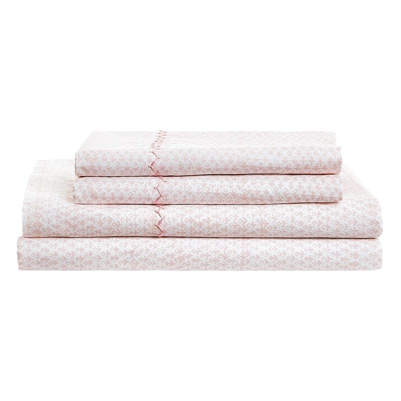 Our Poseti Lotus Sheet Set is feminine and dreamy. The print plays well with all of our pink bedding. Go bold with another pattern or color, or keep it calm with a white duvet or quilt. The perfect organic percale cotton is from the southernmost depths of India and is 100% long-staple for a luxurious feel. Set Includes: Flat Sheet, Fitted Sheet and 2 Pillowcases (1 with Twin Set).