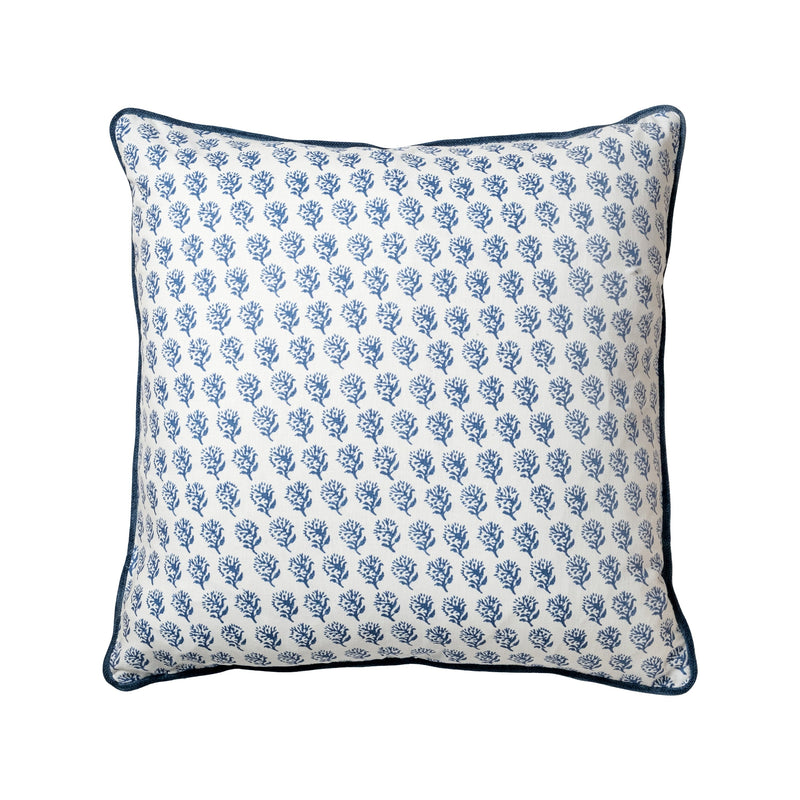 Featuring a classic blue-and-white floral block print, our Amelia Pillow brings a touch of timeless, botanical charm to any room. The design is finished with a tailored contrast blue pipe, adding a sophisticated edge to the classic coastal palette.
