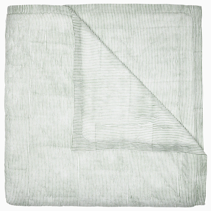 A true celebration of the art of stitching, the Rimi Light Indigo Quilt adds texture and rhythm to your bedroom. Hand-quilted on a canvas of airy organic cotton voile, it showcases alternating rows of intricate stitching in soothing shades of indigo and sage. A lightweight, artisanal layer that feels as beautiful as it looks.