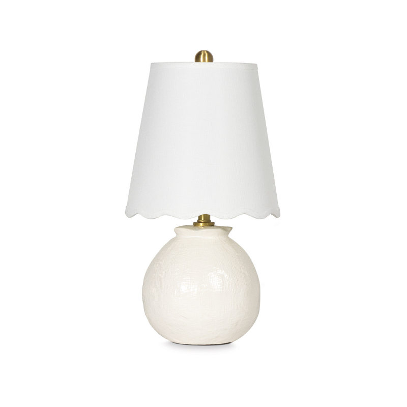 Introducing the Amoria Mini Lamp – a petite delight that brings a touch of whimsy to any space. Its wavy scallop-like shade adds a playful charm, while the white ceramic body and natural brass hardware exude a timeless elegance. Compact yet captivating, the Amoria Mini Lamp is the perfect accent piece to infuse your space with femininity and flair.