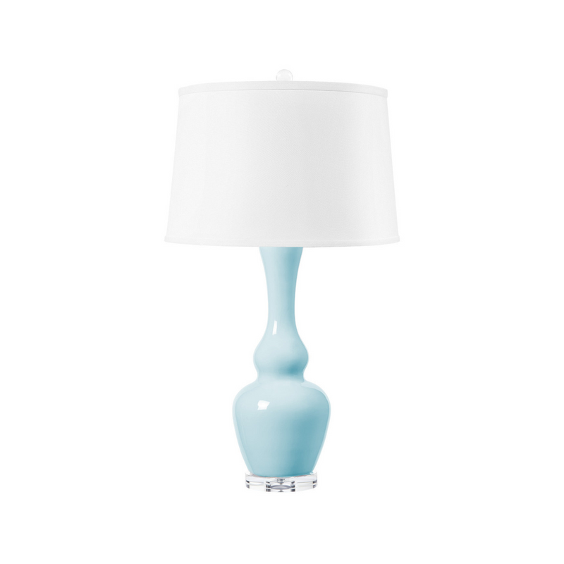 With its refined double-gourd silhouette and slender neck, the Mediterranean Lamp brings graceful elegance to any room. Crafted from glazed porcelain in a glossy finish, it rests on a clear acrylic base for a subtle modern touch. A matching acrylic finial and nickel harp complete the look, adding polish from top to bottom. Topped with a classic linen shade, it’s the perfect blend of timeless design and fresh coastal charm.