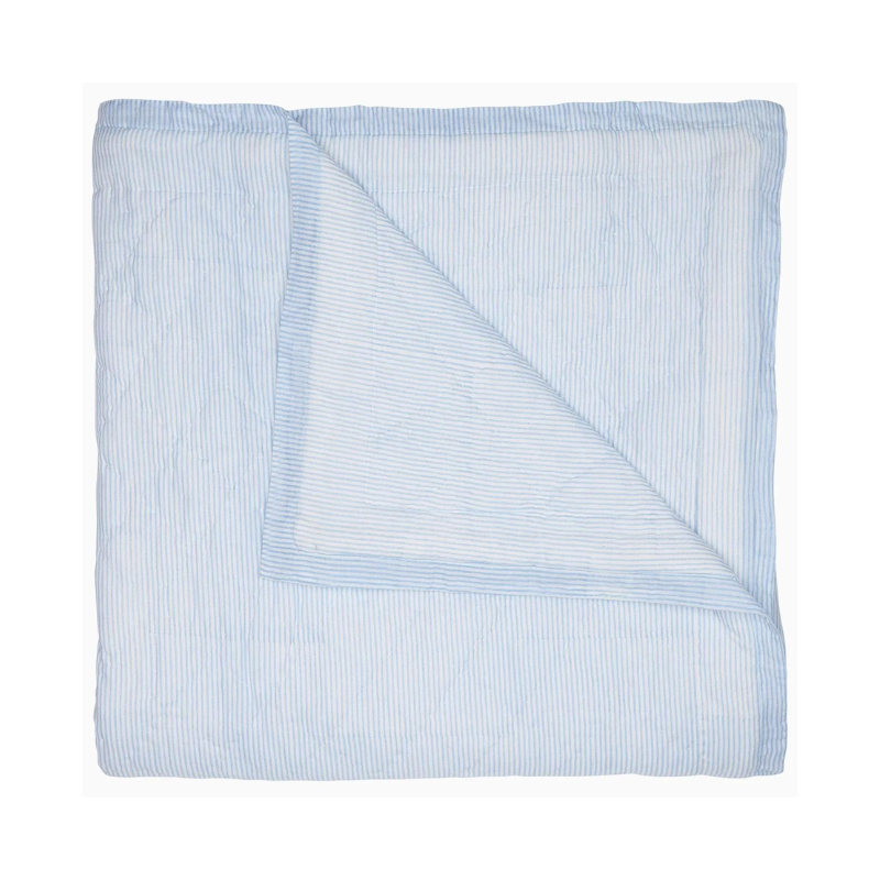 Elevate any space with our exquisite Nandi Quilt, featuring a sophisticated reversible light indigo stripe design. Meticulously crafted from 100% cotton, its luxurious hand weave offers an irresistible invitation to envelop yourself in comfort and style.