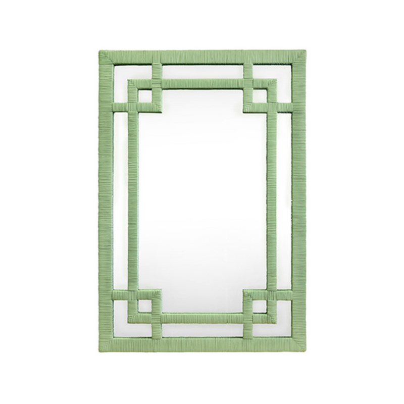 A fresh take on a classic motif, the Sarasota Mirror features a bold Greek key design, finished in a hand-painted sage green for a soft pop of color. Crafted from wrapped rattan, its sculptural silhouette adds texture, structure, and coastal charm to any space.