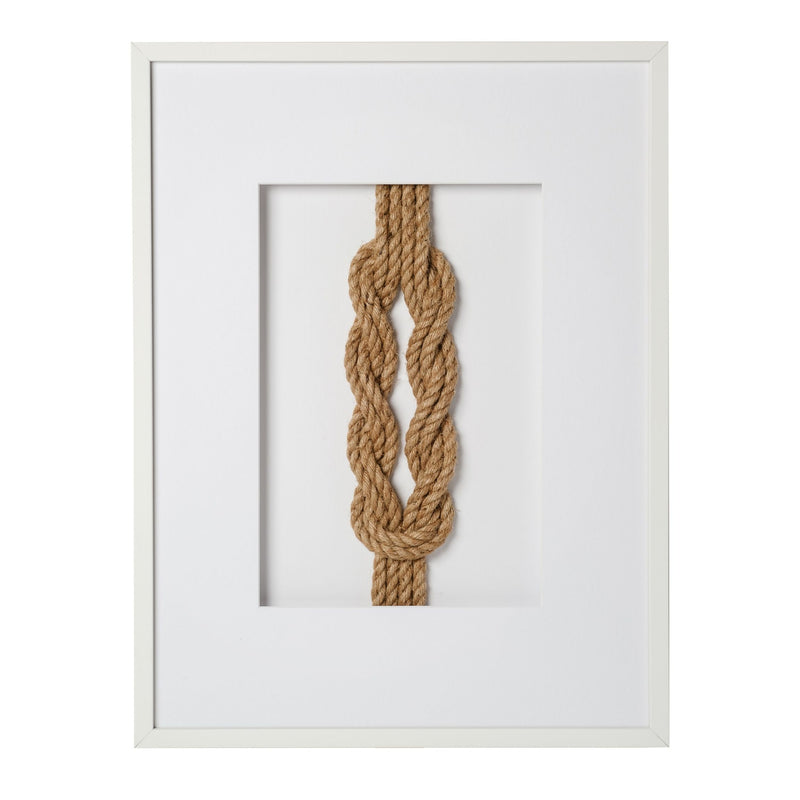 From the double square to the double figure eight, these hand-tied sailing knots are a showstopper. Each piece is made from natural rope and tied with perfect form. These unique knots come mounted on a white mat board and can be styled alone or as a pair or trio for a collected look.