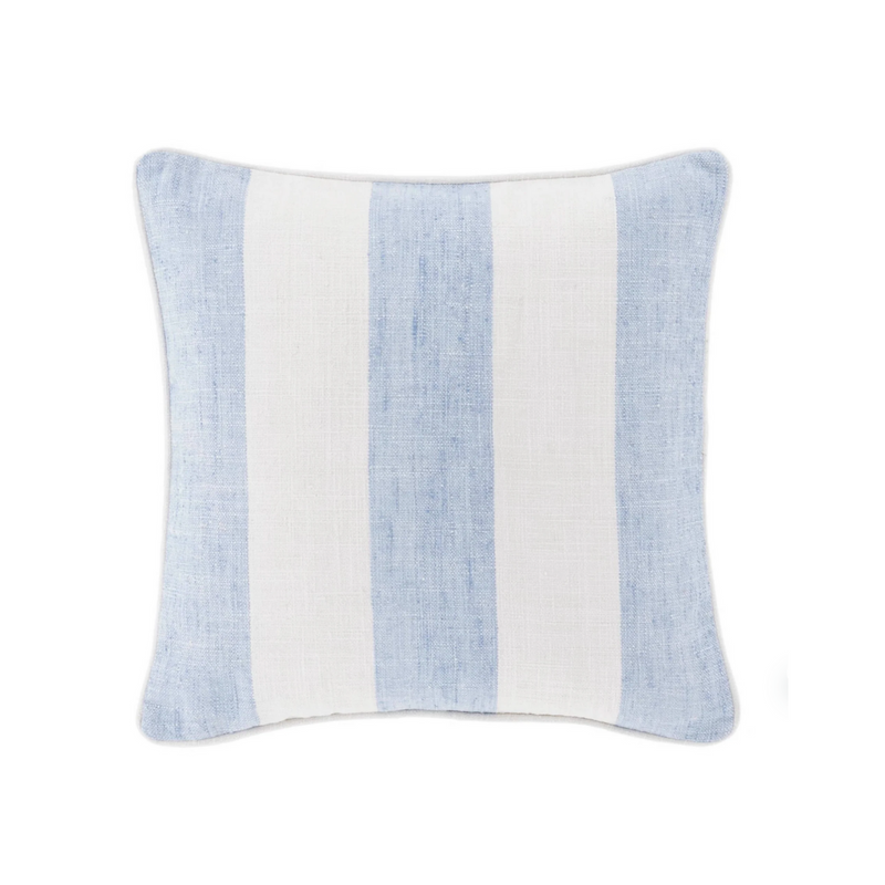 A timeless stripe, reimagined for modern living. The Cabana Stripe Pillows feature a linen-like texture, prominent weave, and soft heathered yarns that lend a relaxed elegance. Crafted from performance fibers designed to resist sun, rain, spills, and pet wear, they balance beauty with everyday durability. Available in two sizes and three serene shades: French Blue, Natural, and Navy Blue.