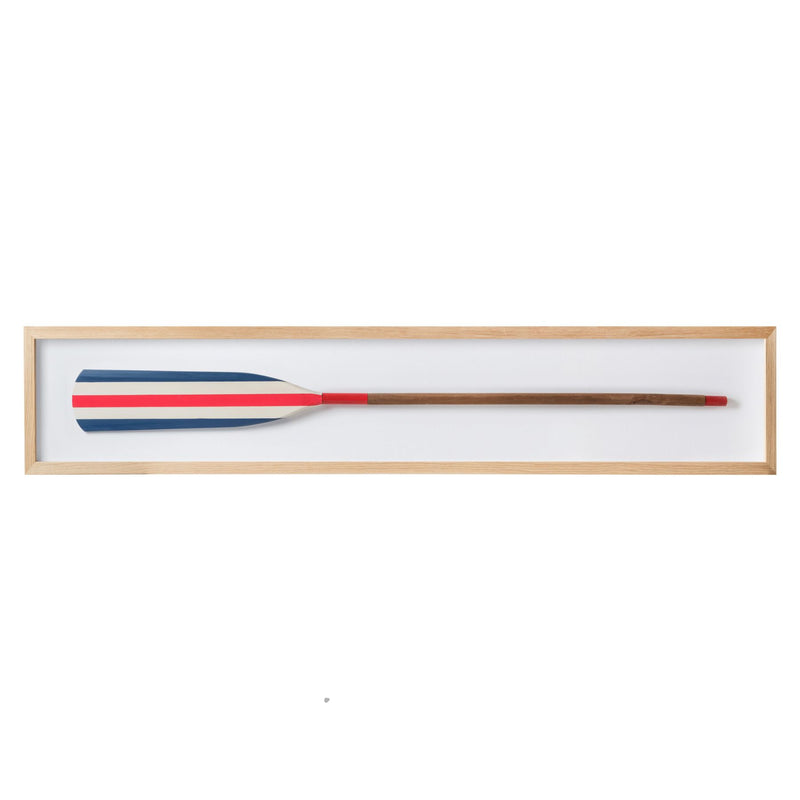 Our best-selling Nautical Oar Framed Art is now available with a patriotic twist! Infuse a sense of adventure and nautical sophistication into any space with our Patriotic Oar Framed Art. This whimsical oar wall décor offers a delightful blend of maritime heritage and imaginative craftsmanship. Framed in maple for a warm, natural finish, its classic coastal style makes it a perfect fit for a beach house, lake house, or nautical-themed bedroom.